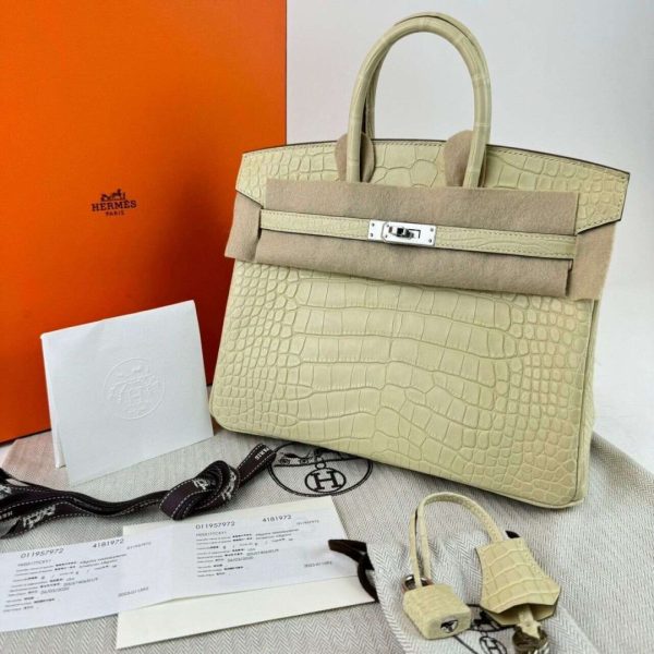 Birkin 25 Alligator Matt Vanille Y1 Phw B