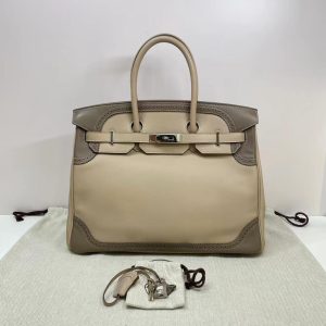 Birkin35 鑽石灰 拼 大象灰蕾絲 銀扣 swift P stamp $69000 Foto PHW