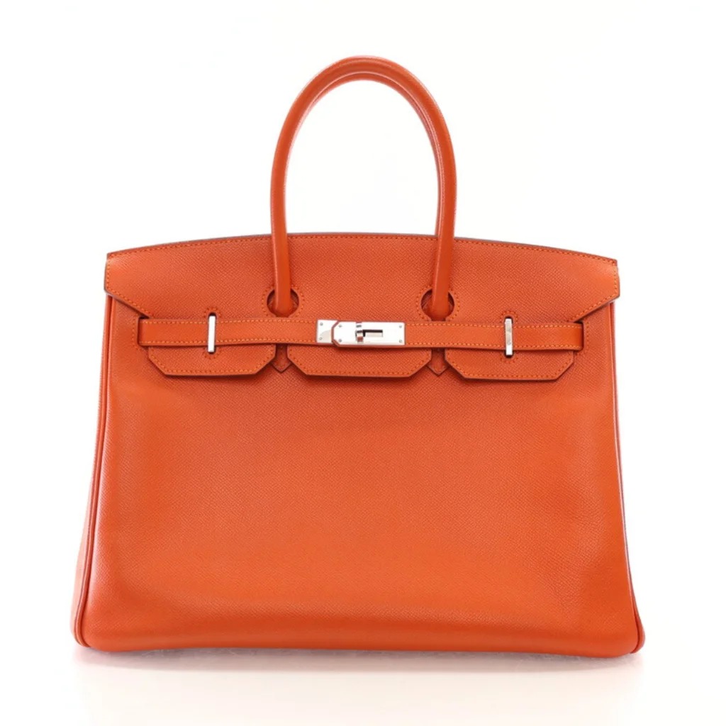 Hermes Birkin 35 Orange Epsom—L-C652WZ——9022 USD // https://ldj.com/home/products/hermes-birkin-35-orange-epsom-phw-o-square-stamp-2011
