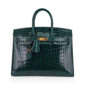 Birkin Sellier 25 Alligator Shiny Vert Fonce 67 Ghw W