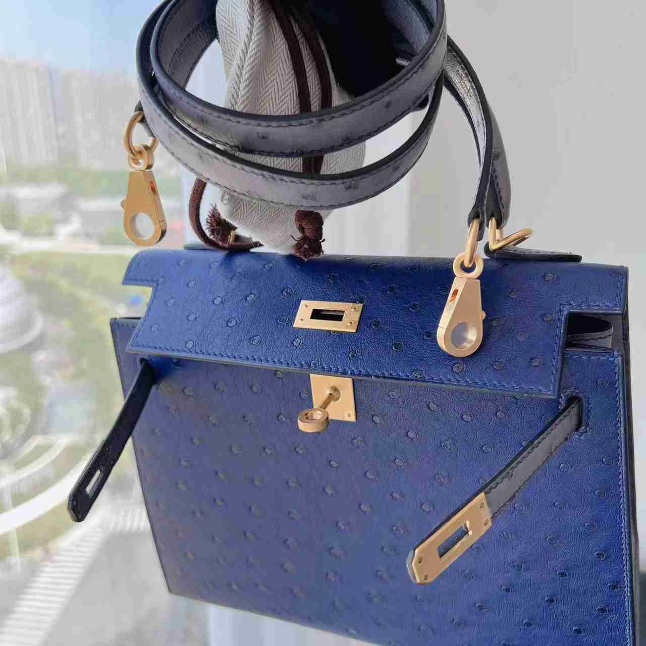 Like New Kelly25 Iris / Gris Ostrich HSS Brushed GHW Stamp U MYR 114,000
