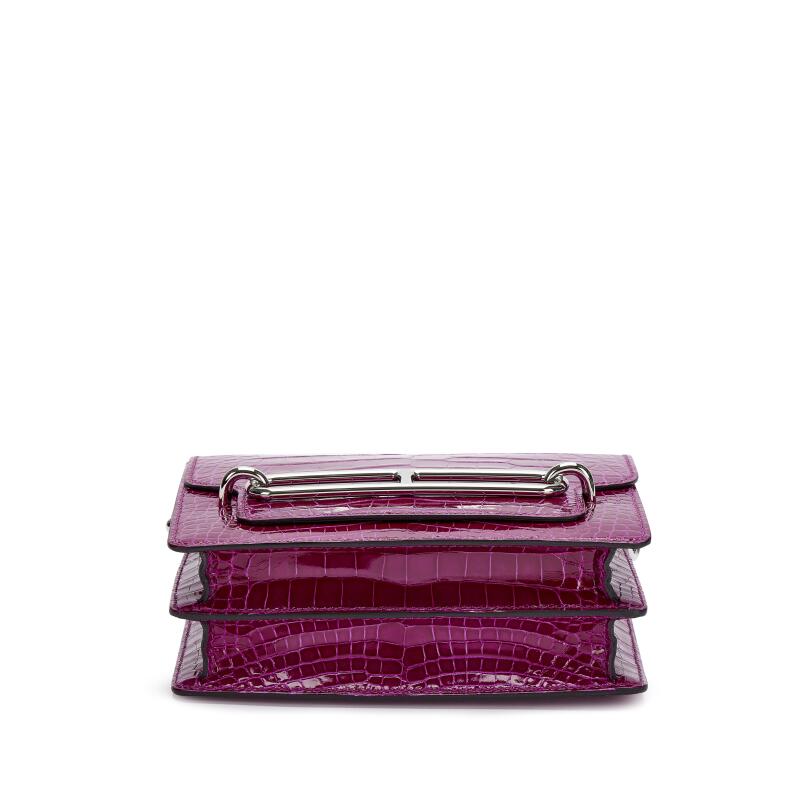 Bought and kept Rose Schéhérazade mini Roulis in shiny gator with palladium hardware stamped D Price: S $18,800 ONLY